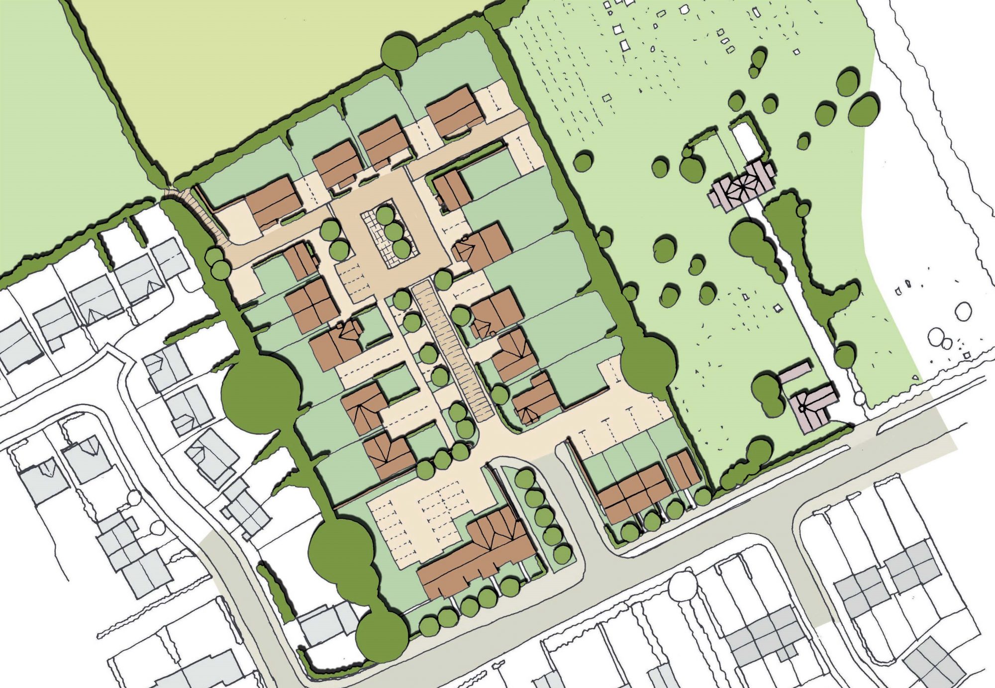 A number of historic planning applications had been refused on the site when Scott Properties entered into an Option Agreement with the Landowner in 2015. Pre-application advice was sought, and engagement took place with the Parish Council and local stakeholders through a public consultation. An outline application for up to 26 homes was submitted in 2016 and refused at Planning Committee later that year. An appeal was subsequently submitted and allowed in 2017. Following a short marketing exercise the site was sold to Cala Homes later in 2017.